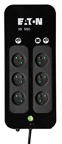 Eaton 3S550FR est aussi un onduleur électrique élégant, capable de s’harmoniser au décor de bureau moderne. Sa finition noire brillante lui permet d’ailleurs de s’intégrer à tout environnement bureautique. Idéal pour un usage domestique, le produit est équipé de 6 prises électriques : 3 étant ondulées et protégées en surtension, puis 3 autres anti-surtensions uniquement.